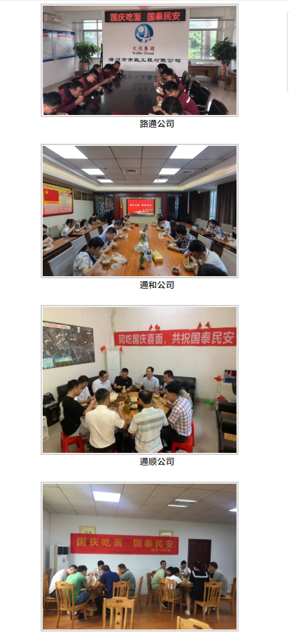 為慶祝新中國成立71周年,倡導(dǎo)國慶新民俗,集團(tuán)及所屬各單位組織開展“國慶吃面 國泰民安”主題活動,大家團(tuán)團(tuán)圍坐,吃著一碗碗香噴噴的面,暢談著美好工作與生活。大家深深感受到,今天幸福美好的生活,得益于祖國的繁榮富強(qiáng),也共同祝愿祖國繁榮昌盛、國泰民安!