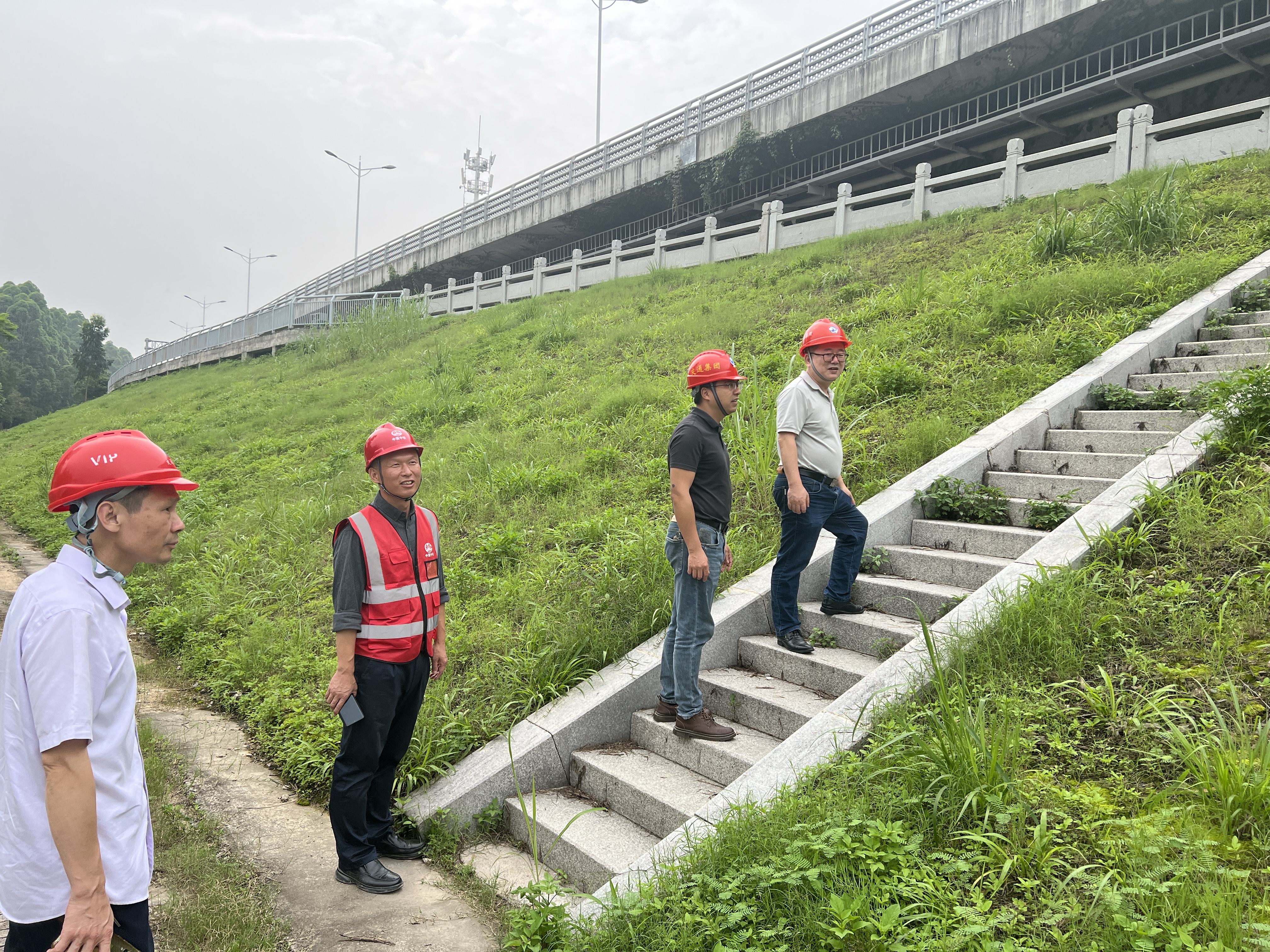 “五一”期間,市政公司董事長吳林坤、常務(wù)副總魏建文帶隊檢查梅書線項目防汛安全情況。