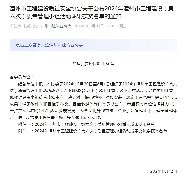 此次獲獎不僅標(biāo)志著通邦公司在工程質(zhì)量管控領(lǐng)域邁出了堅實的一步,更為公司后續(xù)項目的順利推進奠定了堅實基礎(chǔ),同時為后續(xù)參與水仙杯、閩江杯等更高層次榮譽獎項的角逐積累了寶貴經(jīng)驗。