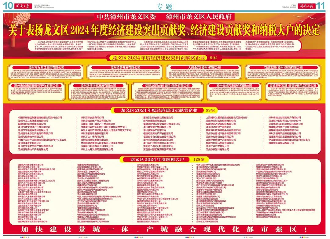 此外,漳州交通集團權屬漳州市通順交通建設有限公司亦獲得“龍文區(qū)2024年度經(jīng)濟建設貢獻獎”,漳州市交發(fā)建設集團有限公司、漳州市通和建設投資有限公司、漳州市通裕資產(chǎn)管理運營有限公司同時獲得“龍文區(qū)2024年度納稅大戶”表揚。